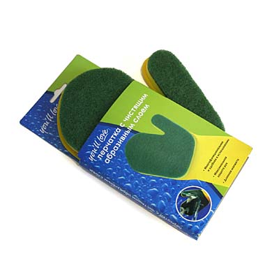 Плотная перчатка (варежка) изготовлена из латекса, имеет удлиненную манжету. По прочности в несколько раз превышает обычные латексные перчатки. На перчатке в области ладони расположен поролон с износостойким абразивным чистящим слоем.