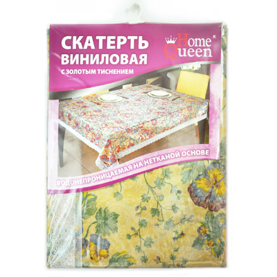 Яркий, жизнерадостный дизайн впишется практически в любой интерьер кухни или столовой. Золотое тиснение, а также кромка в виде белого кружева, придают скатерти особый торжественный и нарядный вид. Виниловая скатерть является прекрасным подарком для ваших близких.