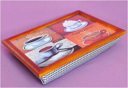 Стильный рисунок столика украсит собой вашу комнату, просто поставьте поднос на полочку вертикально, пока вы не используете его.