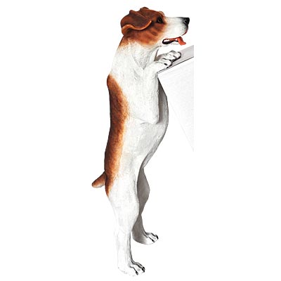 Декоративная фигура для сада в виде собаки, которая опирается на что-либо.