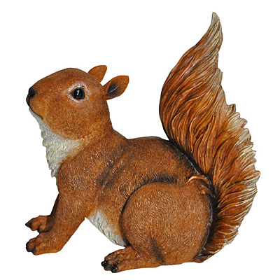 Декоративная фигура для сада в виде сидящей рыжей белки.