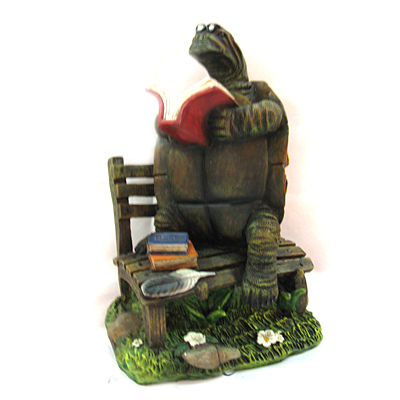 Декоративная фигура для сада в виде черепахи, которая читает книгу.
