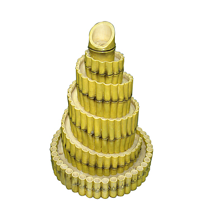 Декоративный электрический фонтан в виде пирамиды из срезанных стеблей бамбука.