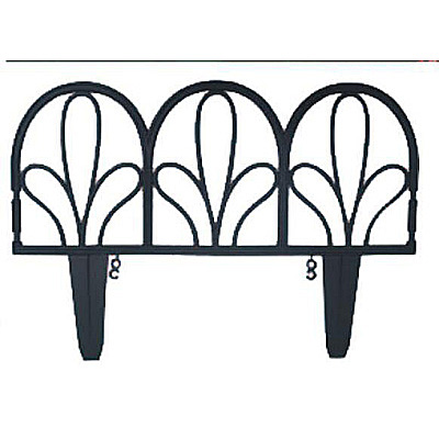 Садовое ограждение в виде пяти составных элементов, каждый из которых оформлен в виде трех арок черного цвета.